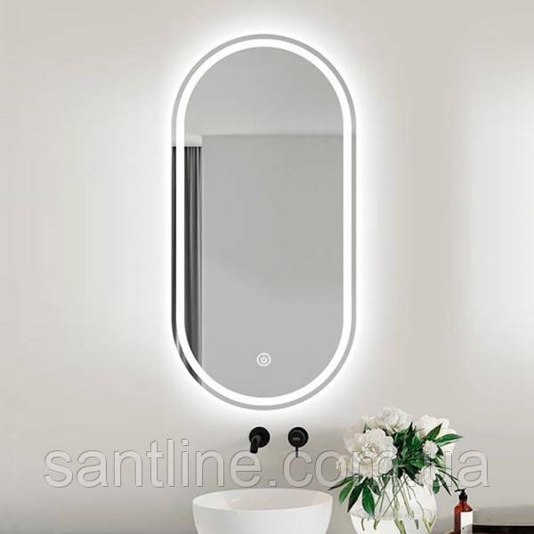 Дзеркало DUSEL овальне 60х120см LED DE-M4031D сенсорна кнопка включення підігрів годинник температура